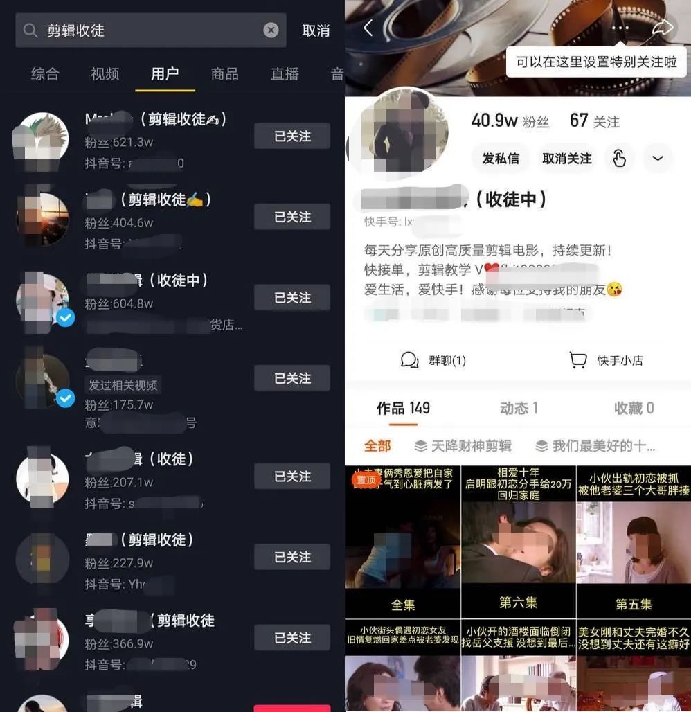 剪辑收徒、插播广告、带货、卖课……影视营销号有着各种各样的吸金手段。在社交平台搜索“抖音剪辑”,可以看到“抖音剪辑号月入过万”的个人经验贴。