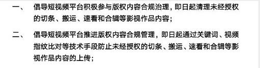 此次《倡议书》到来,不仅显示了长视频平台对影视作品版权内容保护抗争到底的决心,字里行间中也对大家的部分疑问做出了解释,一个重要的观点是:并不是所有剪切的内容都不能发布,这一次的反侵权非一刀切。《倡议书》前两条倡议提到:倡导短视频平台积极参与版权内容合规治理,即日起清理未经授权的切条、搬运、速看和合辑等影视作品内容;倡导短视频平台推进版权内容合规管理,即日起通过关键词、视频指纹比对等技术手段防止未经授权的切条、版权、速看和合辑等影视作品内容上传。