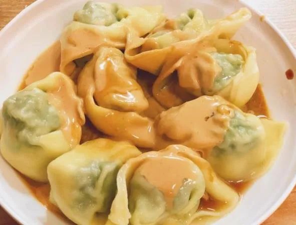 夏天万不可错过冷馄饨,如果你不知该如何选择,那不如来一份双拼,菜馅肉馅一网打尽。馄饨很大只,一个个肚大如斗,表面被淋上了一层金黄的芝麻酱,看起来甚是诱人。荠菜馅的很到位,一口下去,荠菜独有的脆爽碰撞牙齿,芝麻酱的浓香在唇齿间弥漫。而肉馅馄饨则更不会让人失望,肉馅紧实,咬上去很“扎足”,本身就鲜味足,再与浓郁的花生酱搭配,满足感爆棚!