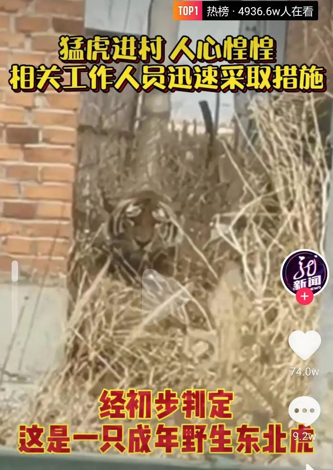 4月23日,黑龙江鸡西密山一村庄闯入一只野生东北虎,是村民早上在自家院子发现的,村民第一时间报警,然后开始疏散群众。
