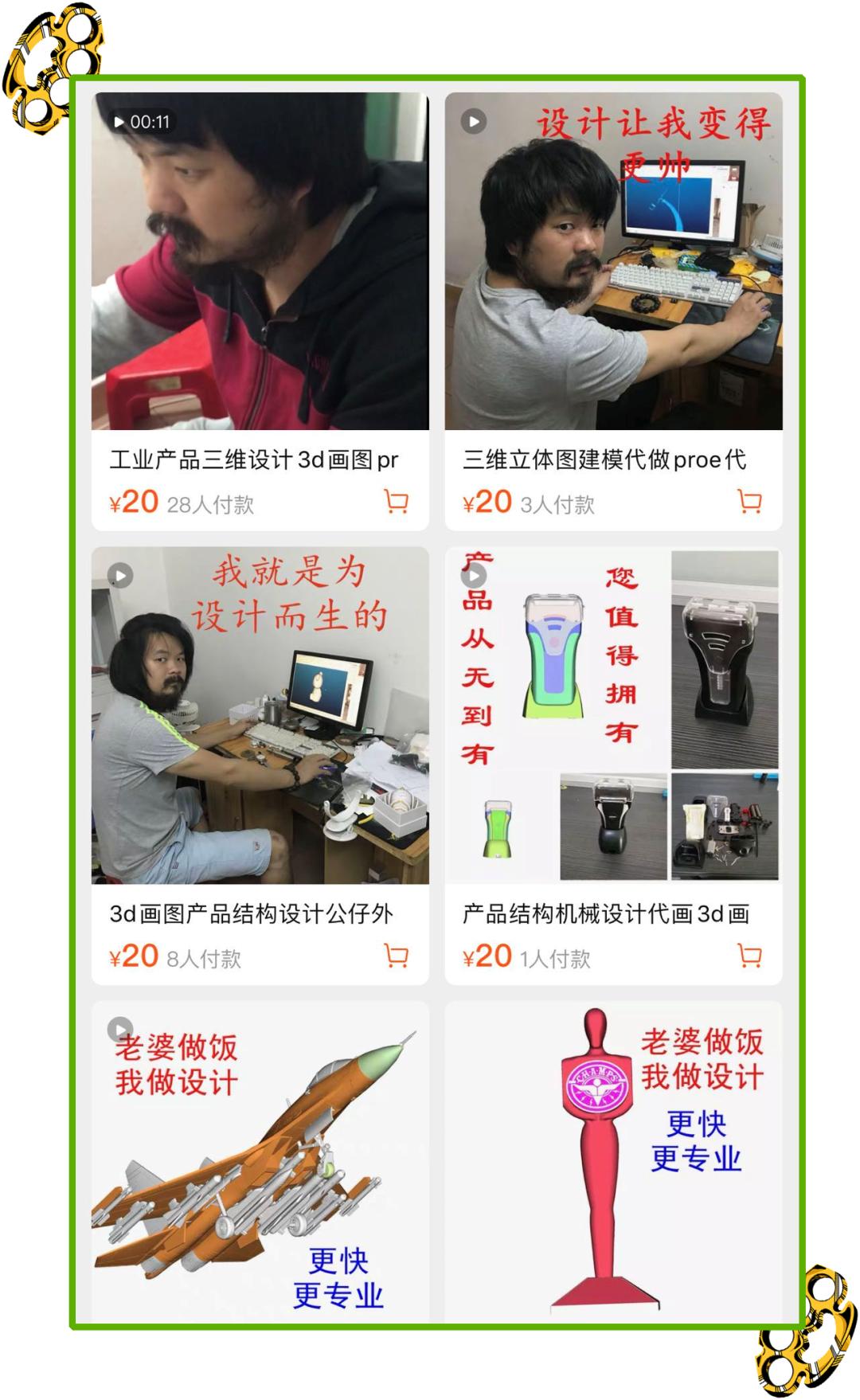 前段时间我突发奇想,想做一个自行车充电宝的支架,由于我没有设计能力,于是我就想去淘宝上找一个3D工业设计的商家,来帮我落实一下这个小想法。翻找了许久,这些千篇一律的设计店家丝毫没有吸引到我的注意力。突然,一家思路清奇、文案冲击的淘宝店抓住了我的眼球。