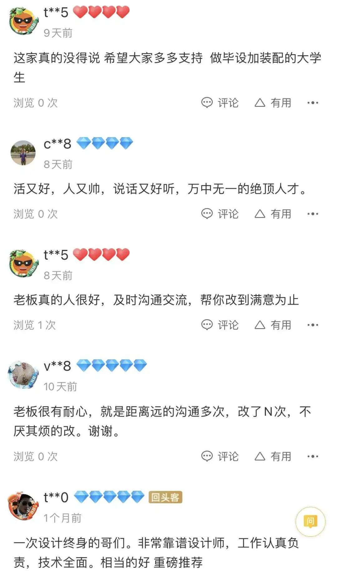 怀着强烈的好奇心,我点进了这家店铺。我发现,宝贝评价里居然一水儿的好评,大家都在夸赞店主活儿好速度快。看来这位店主不只是自信,他是真的有点东西。