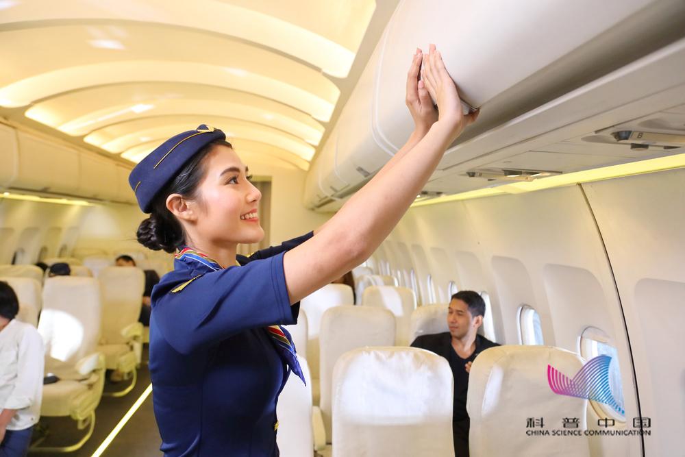 经过客舱过道时都要手扶着行李架;