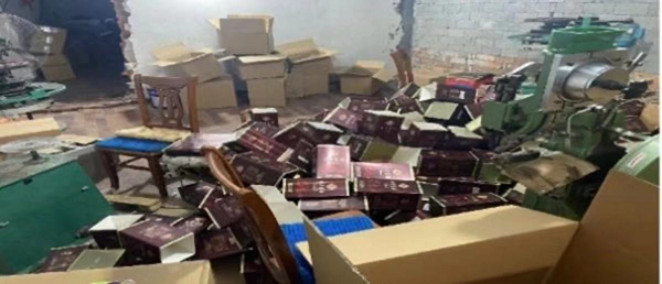 2020年10月,瑞安警方在一辆三轮摩托车上查获假冒“古井贡”酒手提袋半成品10500件,并顺藤摸瓜查获假冒“古井贡”酒铁皮封盒顶盖等物品17200件,又在许某、林某的小作坊内查扣假冒“古井贡”酒防伪标签、铆钉、胶带、手提袋、礼盒、外箱等物品183000余件。