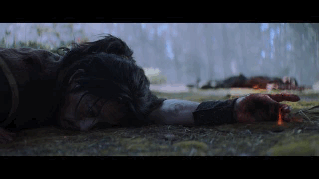 听到惨叫,看到妻儿的尸体,波佐治半藏赫然而怒。刀剑飞镖齐上阵,他以一敌百,为家人复仇。