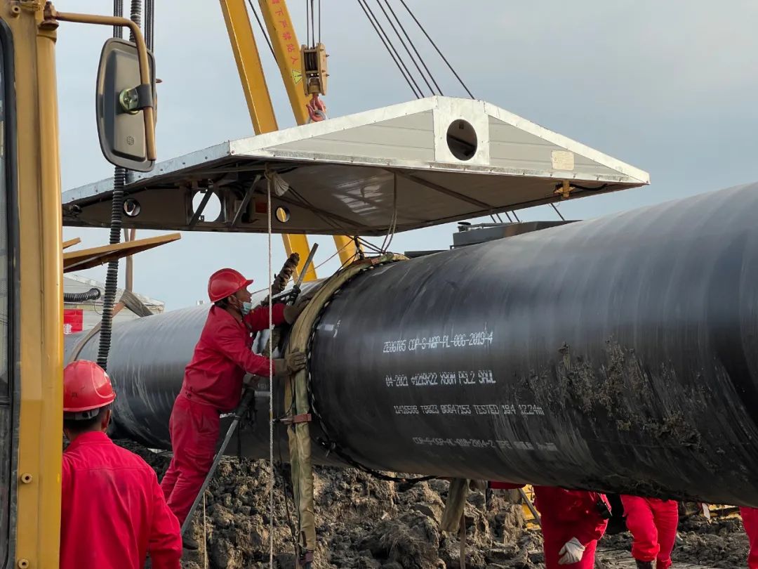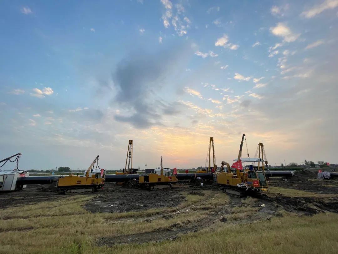 中俄东线天然气管道工程泰安至泰兴段第九标段,全长47km。地形多以连片水稻田、蟹塘为主。2月20日设备运抵现场,3月5日打火开焊,计划于明年5月工程全面竣工。该项目由四川油建公司承建,施工采用总包方四川油建公司配备固定的管理人员现场帮扶、中国安能唐山分公司独立承担焊接任务的合作模式进行。