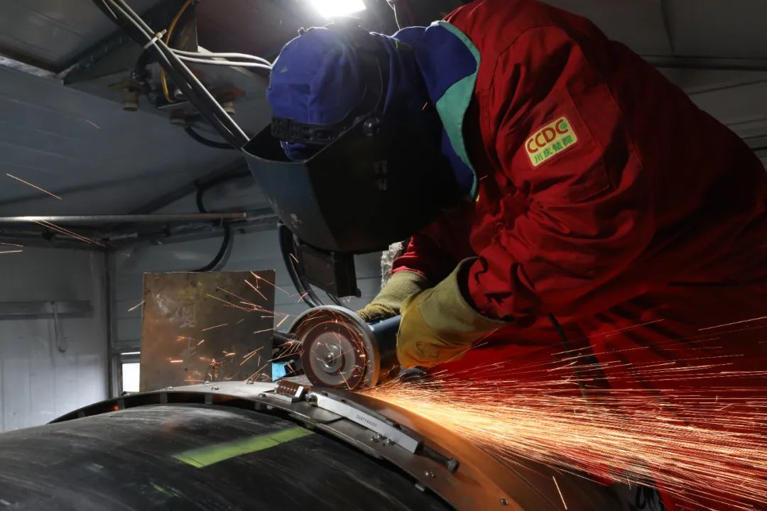 正在进行打磨作业的尹洋打火开焊以来,从试焊6道管口的基础练习期,到18名特种焊工全数通过的上岗考核期,再到如今顺利通过“百口磨合”期考核,表明了新组建的这支全自动焊接大流水机组已具备独立作业能力。这为下步签订合同转入正常施工期打下了坚实基础,是中国安能进军天然气管道市场“新领域”的首次成功实践。