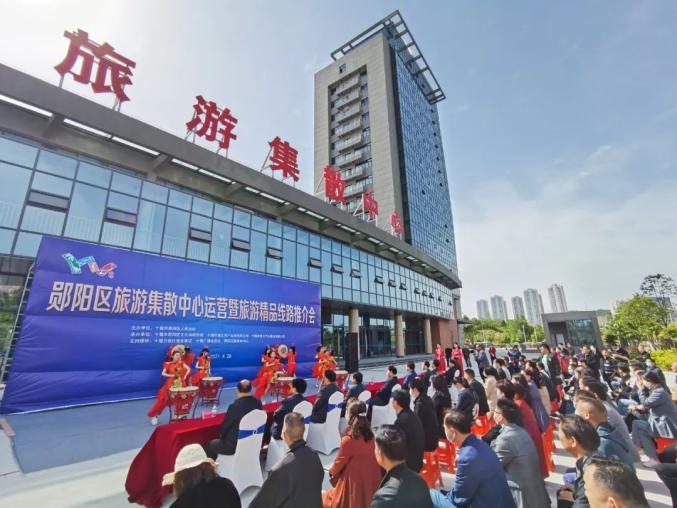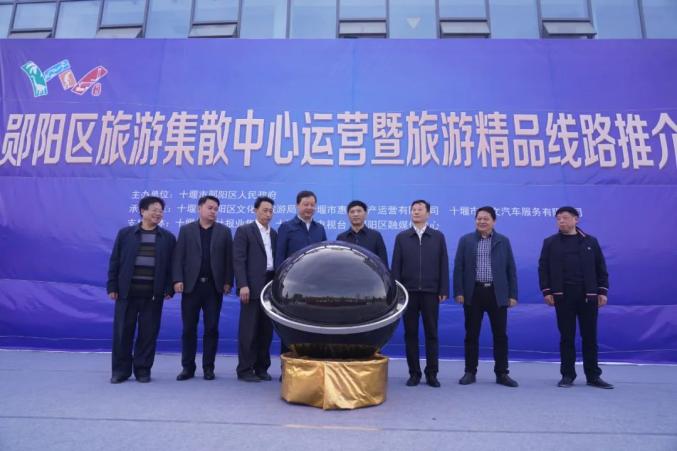 ▲与会领导共同启动郧阳区旅游集散中心运营启动玻璃球戳视频,看现场