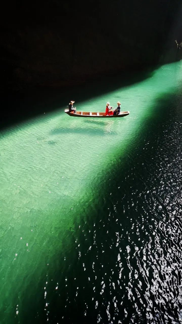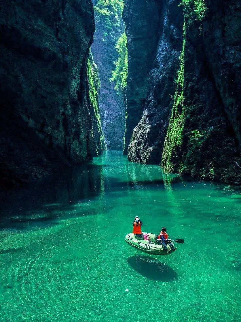 这里两岸是高山,中间是呼天相映的碧波,目之所及的一切都是绿色。也正因如此地势,这里十分轻易地便雾气缭绕,让人体会到想象中的“仙境”是为何物。
