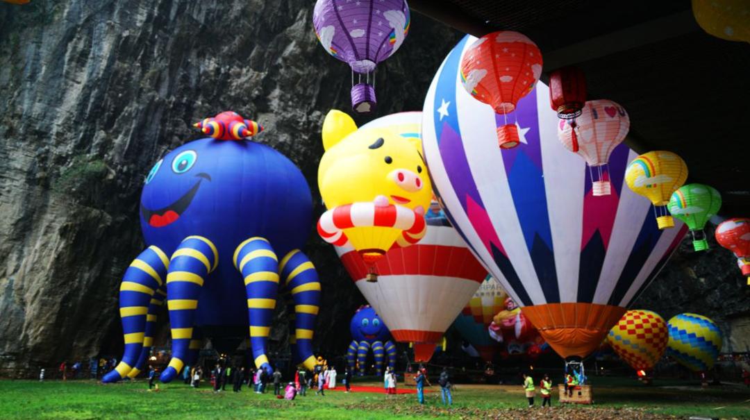 △利川腾龙洞。你可以在这个中国最大的溶洞,参加“腾龙洞热气球嘉年华”。