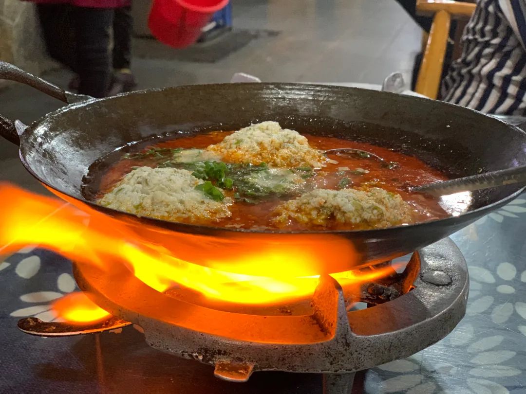 有很多种口味和调料选择,吃起来的口感,和重庆的豆花差不多,口感再稍微粗糙些,最大的特点还是锅中的汤汁。