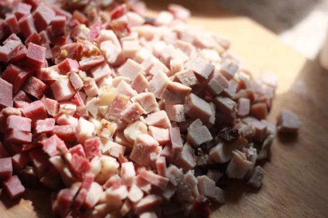 △社饭的不能少的材料,如野葱、腊肉。图by 网络还有,