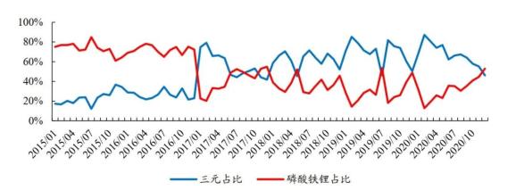 其次,从去年开始,随着宁德时代的CTP技术和比亚迪刀片电池的发布,以及低续航车型的渗透等诸多事件,让磷酸铁锂重新得到主机厂的认可,磷酸铁锂强调低成本,自然更青睐干法隔膜。