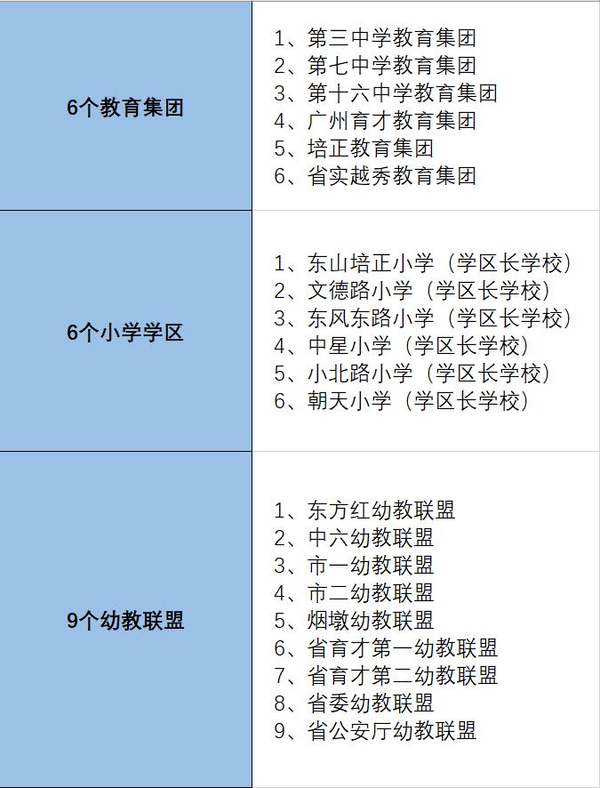 政策制定上:越秀区计划分别印发关于深化集团化办学、学区化办学和幼教联盟建设实施意见的三份文件,从制度保障上出台一揽子的配套措施,赋予集团、学区和联盟一定的人事、经费和资源统筹权,进一步激发学校的办学活力。
