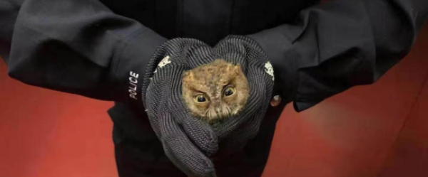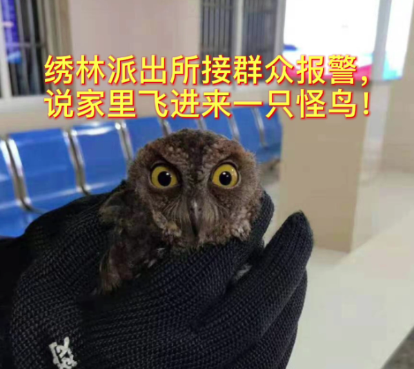 近日,石首市绣林派出所张警官一行三人来到在石首野生动物保护站,同时带来一只用塑料篓网着的鸟儿。鸟儿的相貌十分符合公众对猫头鹰的印象:圆脸庞,大眼睛。张警官说明了来意,原来是有只野鸟飞入一位居民家中,该居民准备将鸟儿留在家中当宠物饲养,邻里街坊过来看热闹,其中有一个邻居对野生鸟类有所认知,告诉该居民,这是一种受国家保护的野生鸟类,赶紧打110求助。张警官接警后立马赶到现场将野鸟带到野生动物保护站。