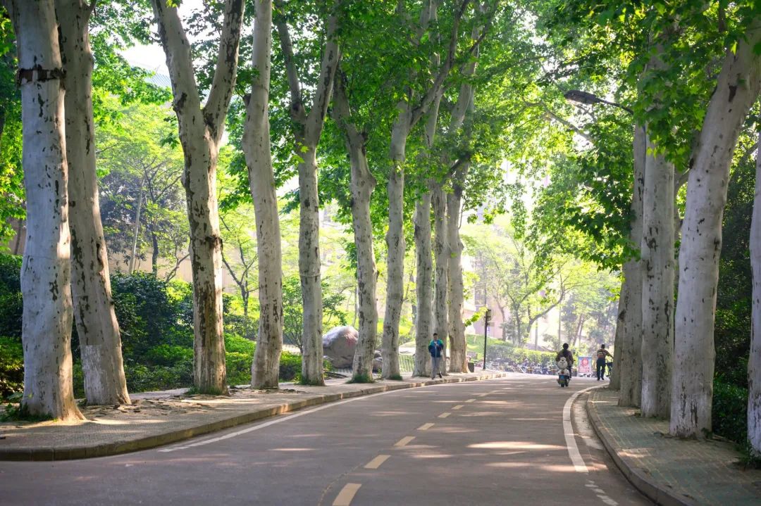 二球悬铃木适应性极强,比原亲本一球悬铃木更能抵御虫害,比三球悬铃木更耐寒;还耐污染,叶子可吸附空气中滞沉的污染物颗粒,有“净土树”之称;它生长快速、叶大荫浓,是酷暑时读书人在路上悠闲徜徉的天然绿伞,十分适合作为校园绿化的行道树种,伴武大学子度过在珞珈山的大好时光。