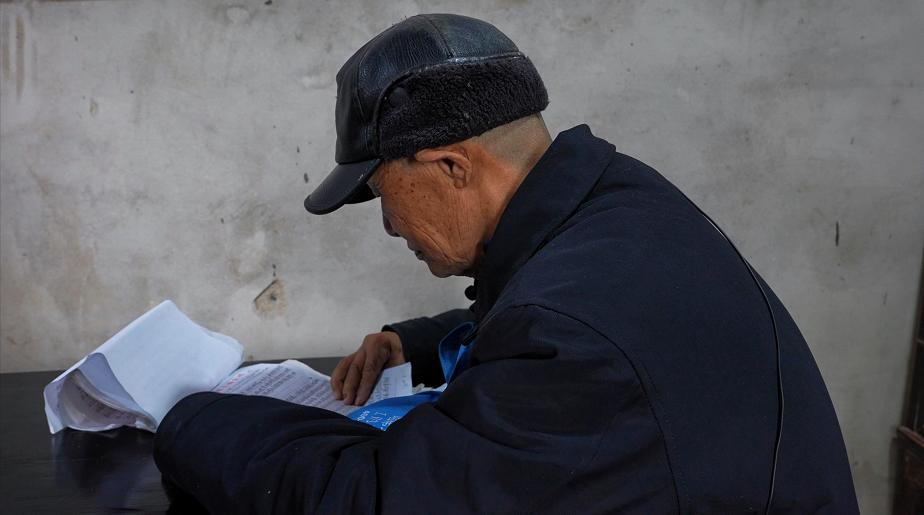 △邱龙旺老人(戎尤平 摄)4月27日,老人颤颤巍巍拿出了他的珍藏——一叠泛黄的信纸。“这上面记录的资料都是我四处收集的,有些则是从本村其他人口中打听而来。”老人虽已高龄,但思维清晰、声音洪亮。