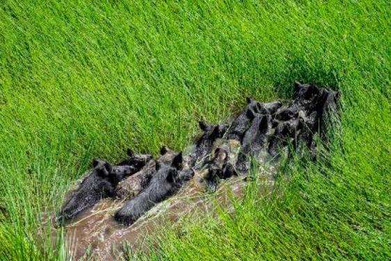 约克角游荡的野化猪群