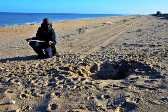 雨季连绵降水过后,即便马力强劲的越野车也可能在泥泞的灌丛或湿软的沙地里遭遇陷车。翻涌的溪流宽阔危险而难以逾越,鳄鱼埋伏其中伺机而动。因此巡护员们往往需要花费长达数星期的时间寻找海龟的巢穴,而且他们常常迟来一步,大部分情况下猪群或其他捕食者早已捷足先登,将巢穴洗劫一空。