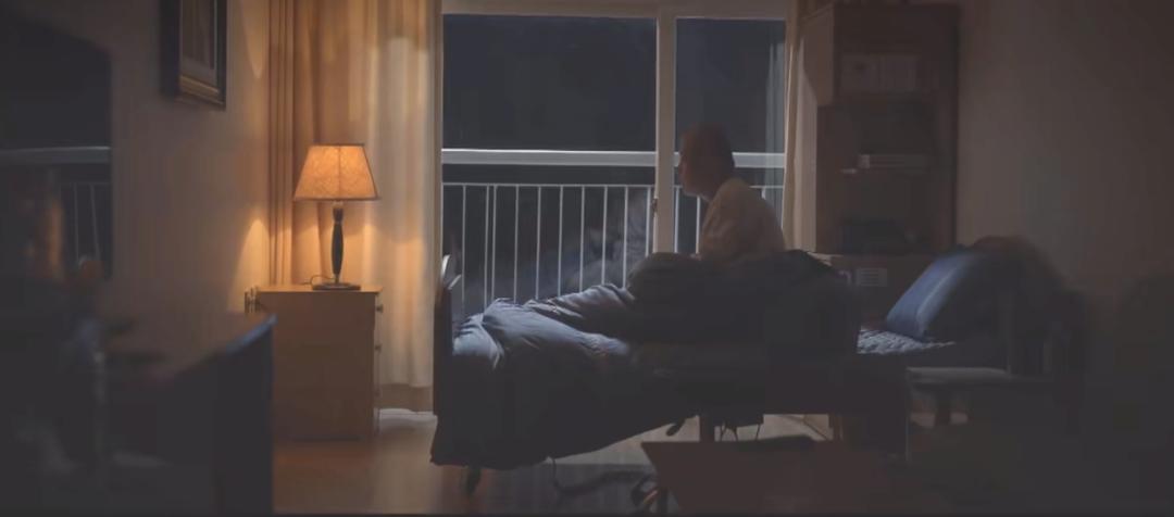 醒来后,他听到窗外有海浪的声音。长久以来的痛苦,让他产生了幻觉。天台外的柏油马路变成了海。