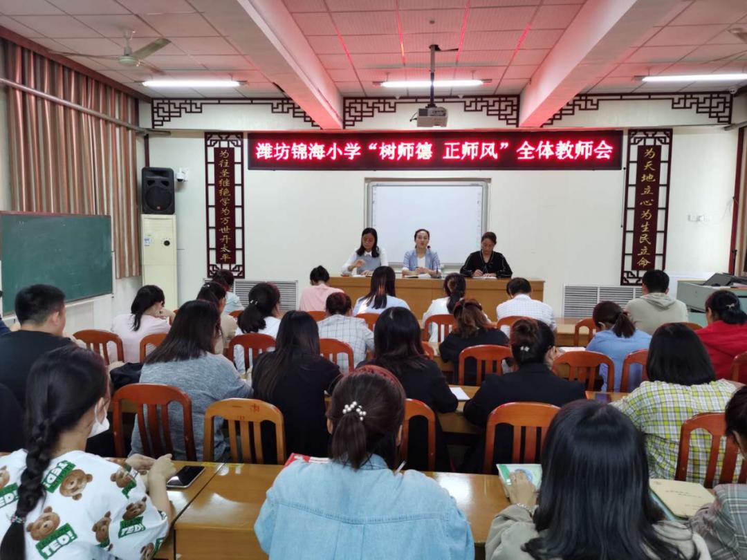 潍坊锦海小学将党风廉政建设宣传教育与师德师风专项整治工作相结合,采取集中学习宣传、拓展教育链条、廉政文化进校园等举措,以“红色、廉政、家风、国情”四大廉政文化教育基地为平台,组织开展了一次师德师风专题组织生活会、党支部书记上一堂廉政党课、举办一次廉政书画展、师生分享一个廉政故事、每日诵读一段廉政国学经典、举办一次孝文化“小手牵大手”主题廉政教育活动、观看一次廉政专题片、开展一次家风家训评选活动、签订一份廉洁从教承诺书,举行一次师德宣誓活动,将廉洁教育融入课堂教学、德育、校园文化建设之中,在全校营造了崇廉尚德的文化氛围。