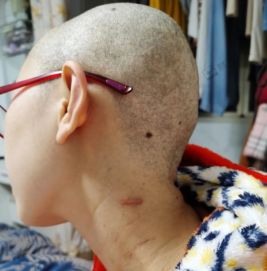 伴随着每一次治疗、复发、治疗,柱子哥的头发长了又掉,掉了又长。身边的人甚至能从头发长短,来辨别她病情的进展。