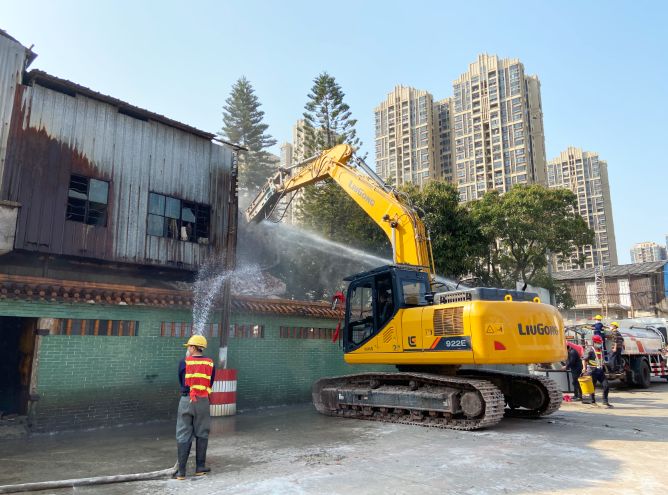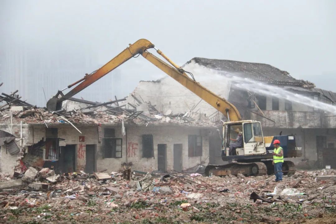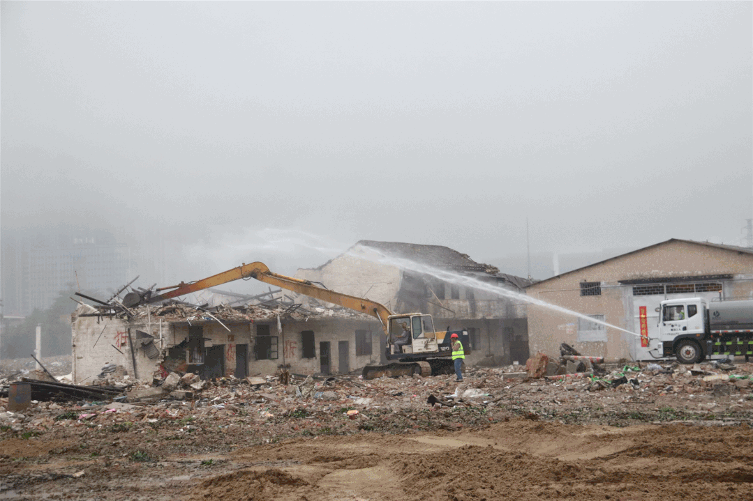 现场,钩机、喷水机同步投入运作,旧厂房被陆续破除,涌口工业区拆除工作有序进行中。自2月26日正式开拆后,项目全速推进,目前已完成地上建筑70%的拆除工作,预计在4月底基本完成拆除工作。