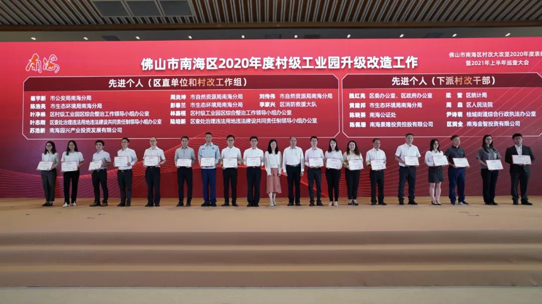 下午,南海区村改大攻坚2020年度表彰大会召开。会上,南海表彰一批2020年度村级工业园区升级改造工作先进集体和个人,10个村级工业园区升级改造工作优秀项目获授牌。