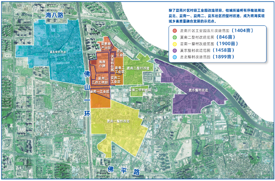 以建设广东省城乡融合发展改革创新实验区先行示范区为契机,桂城还将加快三大片区旧村改造步伐,全力推动千灯湖片区夏北旧村改造,映月湖片区总面积超过5000亩整村改造,叠水小镇、石(石肯)四村等整村改造,推进三山片区以2000亩为单位的地铁2、4、11号线TOD项目。
