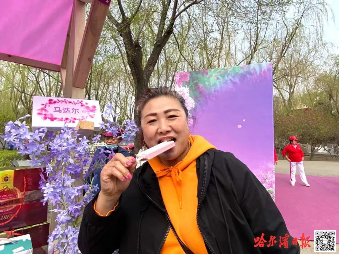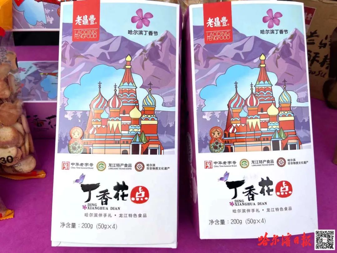 在美食展示板块,汇聚了老鼎丰、商委红肠、老厨家等10余家“老字号”。记者在现场看到,种类繁多、各具特色的美食吸引市民纷纷驻足。“丁香美食有特色,绝对是咱冰城的新‘网红’。”市民于女士在现场选购了丁香冰棍、花点等美食,并在朋友圈晒照邀请外地亲友到哈品尝。