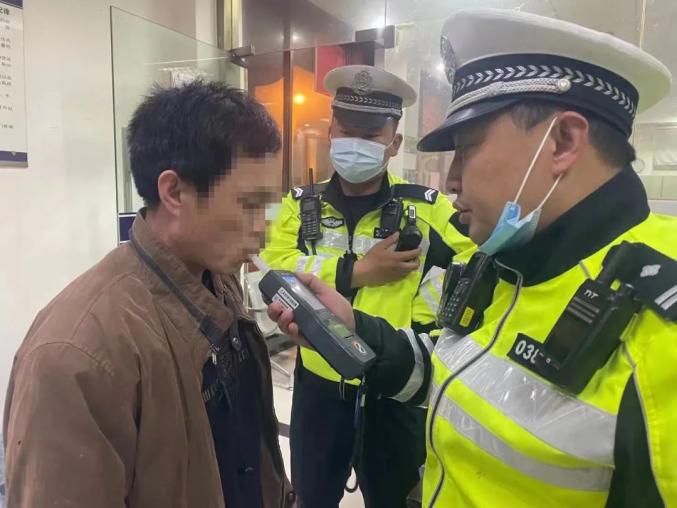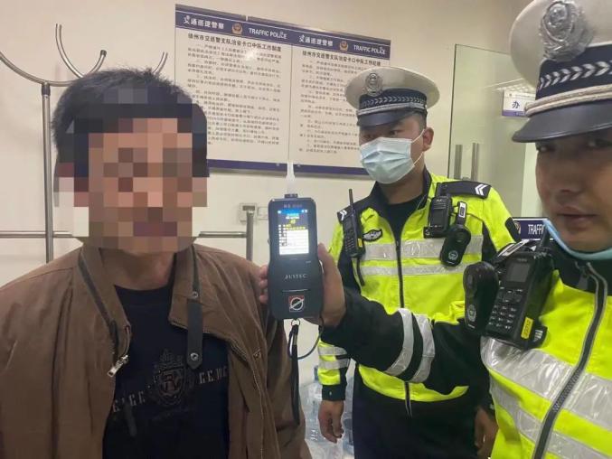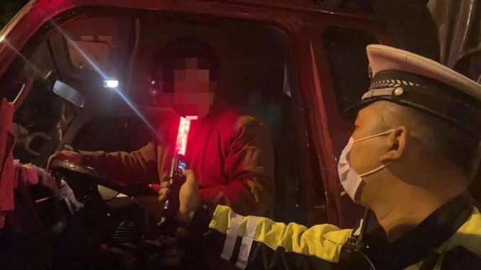 4月27日,正值全国酒驾醉驾集中整治行动第二天,徐州市交警支队大龙湖大队潘塘中队民警在104国道与潘姜线路口,对过往车辆进行酒驾检查。晚10时许,在检查一辆轻型仓栅式货车时,民警通过设备检测到驾驶人有酒驾嫌疑,于是将其带离进一步检查。