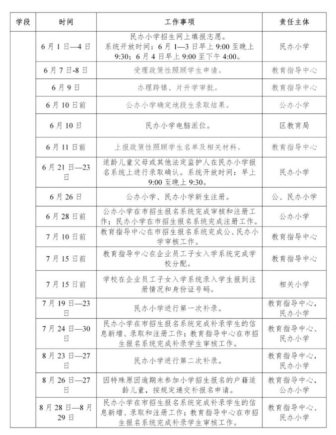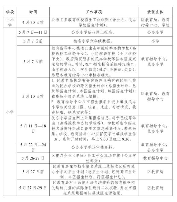 广州市白云区2021年义务教育学校招生工作日程安排