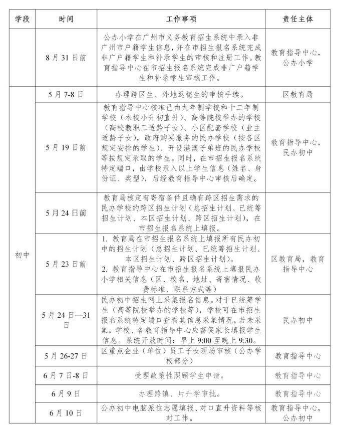 (四)符合积分入学条件的来穗人员随迁子女,按《广州市白云区来穗人员随迁子女积分制入学实施办法》(已于2019年5月在白云区人民政府网公布)申请入学,并根据《广州市白云区积分入学时间安排表》的要求和指导报名。积分入学时间表及申报指南将后续公布,详见白云区人民政府网相关信息。