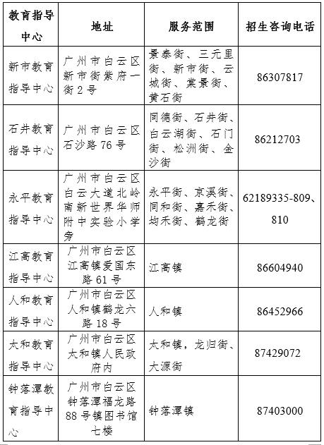 白云区各教育指导中心联系方式