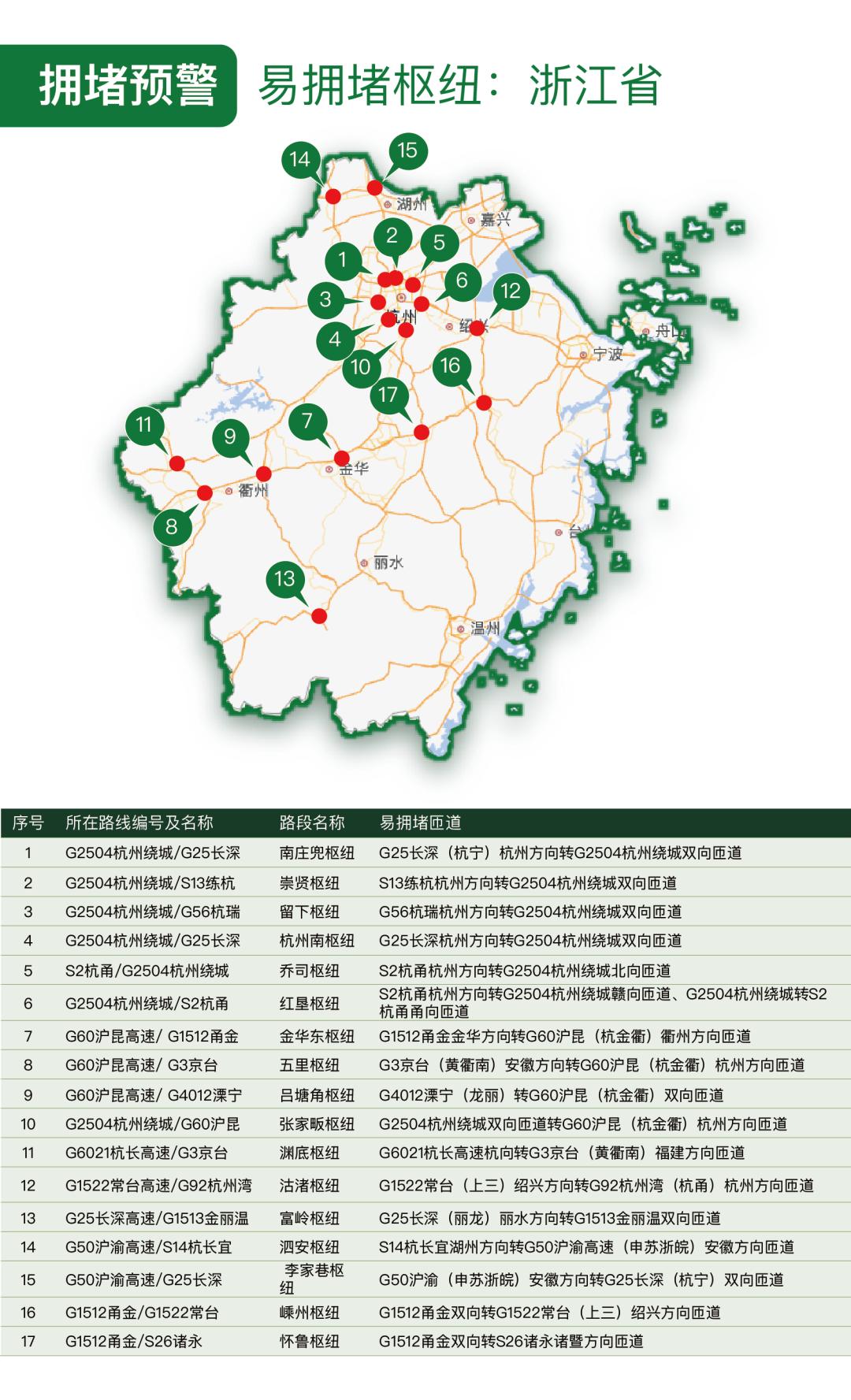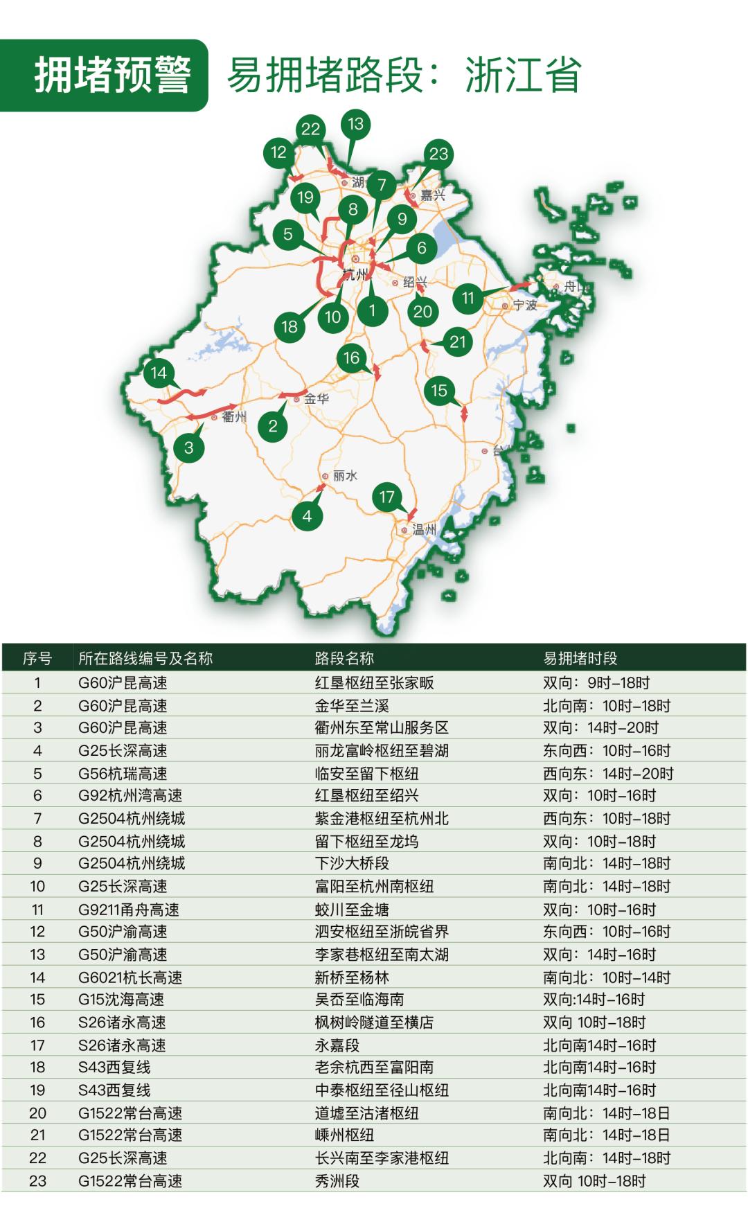 由于返程时间比较集中,预计5月5日下午返程会发生排队缓行及拥堵的次数较多,尤其以杭金衢、杭新景、杭徽、诸永、杭长宜等高速返程流量集中的特征更为明显。