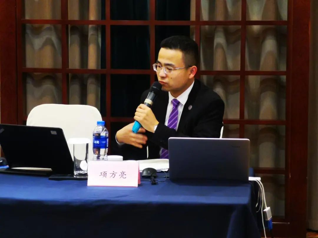 上海美谷律师事务所受邀为奉贤安徽商会开展民法典公益讲座,来自奉贤区安徽商会的20多名企业家参加了此次讲座。图为项方亮律师进行公益讲座。