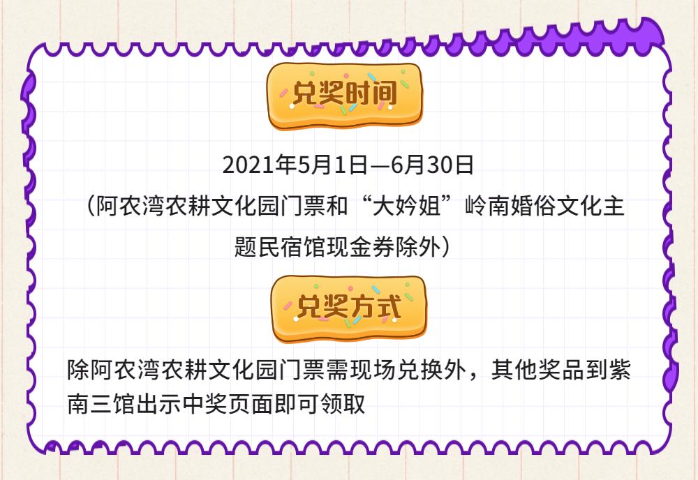 2、4月30日-5月2日发送“劳动节快乐”到公众号后台即可参与抽奖活动,有机会获得五一紫南文旅大礼包奖品!(当天福利派完即止)