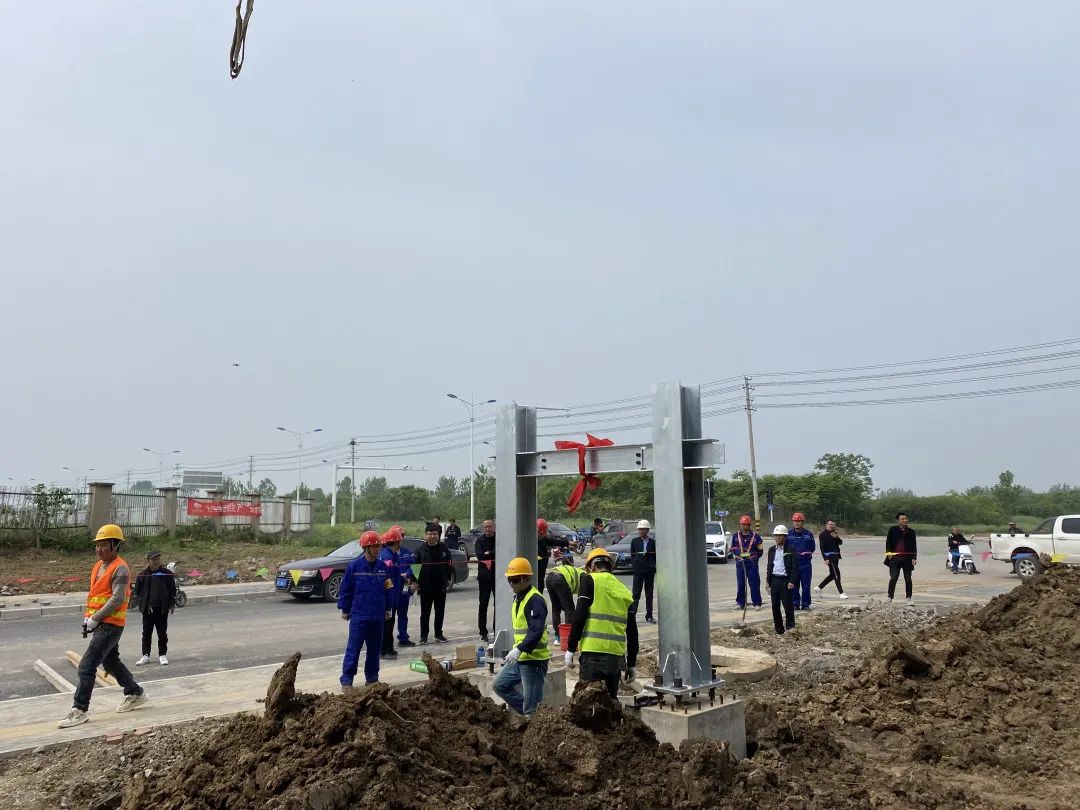 施工现场颍上循环经济园二期路网项目包含6条道路,总长度约11.755km,并配套建设桥梁、给排水、弱电、路灯、绿化、交通工程等;综合管廊工程:总长度约5.9公里。其中,纬八路、纬六路已通过验收,其余道路正在进行上面层沥青施工,绿化种植,照明、交安标牌及信号灯安装等。综合管廊工程交付段基础施工基本已完成,正在进行钢结构吊装安装。消防站项目训练塔主体封顶已完成,砌体、二次结构及装饰装修施工已全面展开,主楼主体马上也进入封顶阶段。目前,项目部正全力组织一切资源,全方位统筹调配,确保6月底完成节点目标。