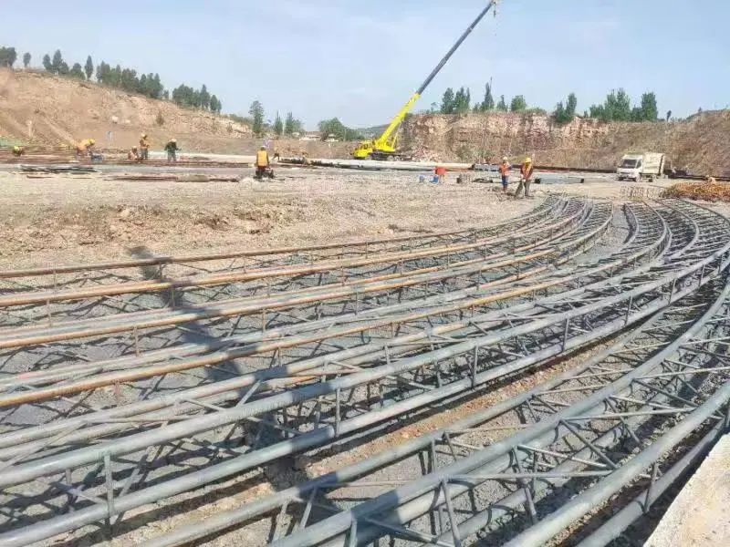 施工现场路基工程队伍严格执行山东高标准的施工要求,进行地面复测、清表,边开挖边覆盖。在施工现场用彩钢瓦将施工区域与县道连接处实行围挡封闭施工,雾炮机跟着挖机施工,开挖设置台阶,路基台阶开挖完成部分用密目网遮盖,完美做到施工场地安全文明施工。梁场建设也不甘落后,基坑开挖,基础钢筋绑扎、浇筑混凝土,抓紧一切时间进行施工。