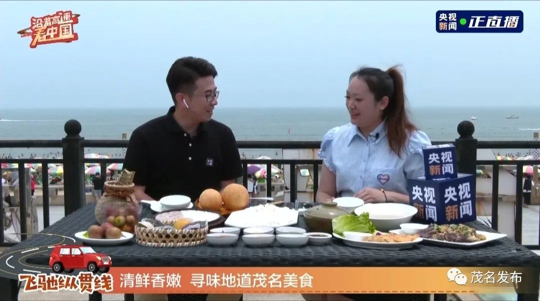 “沿着高速看中国,沿着包茂高速看茂名。大家好……”在中国第一滩,伴着海浪声和游人欢乐的喧闹声,中央广播电视总台央视记者黄东旭收集了一桌茂名特色美食,和来自茂名市美食文化产业协会的特邀嘉宾余文君一起介绍给全国网友。