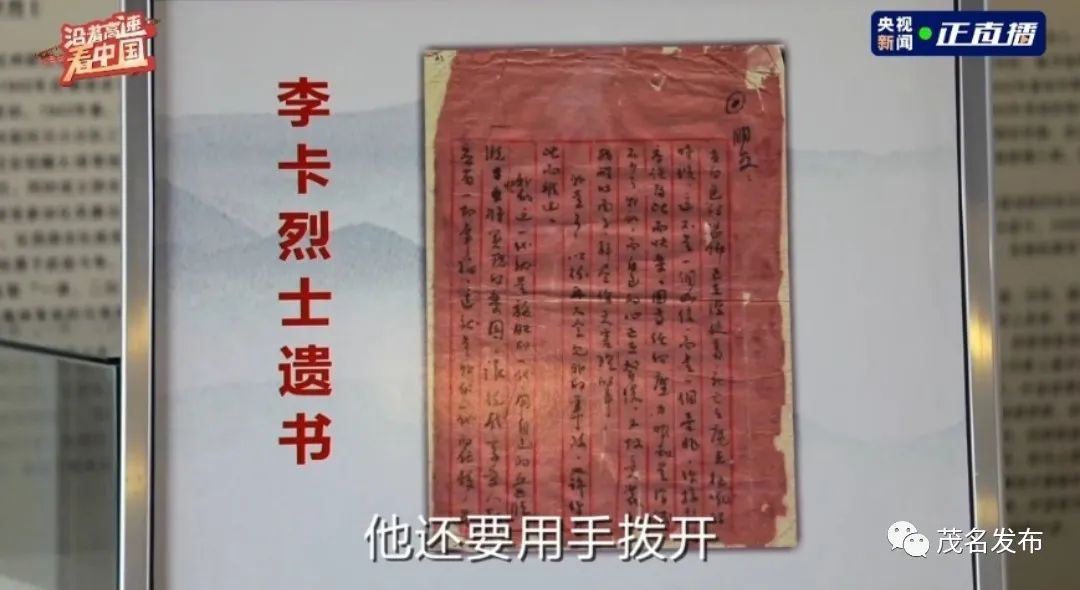 短片报道了广东革命南路化州教育基地,播放了革命先烈李卡狱中遗书的片段,还专访了他独生女儿李水田。