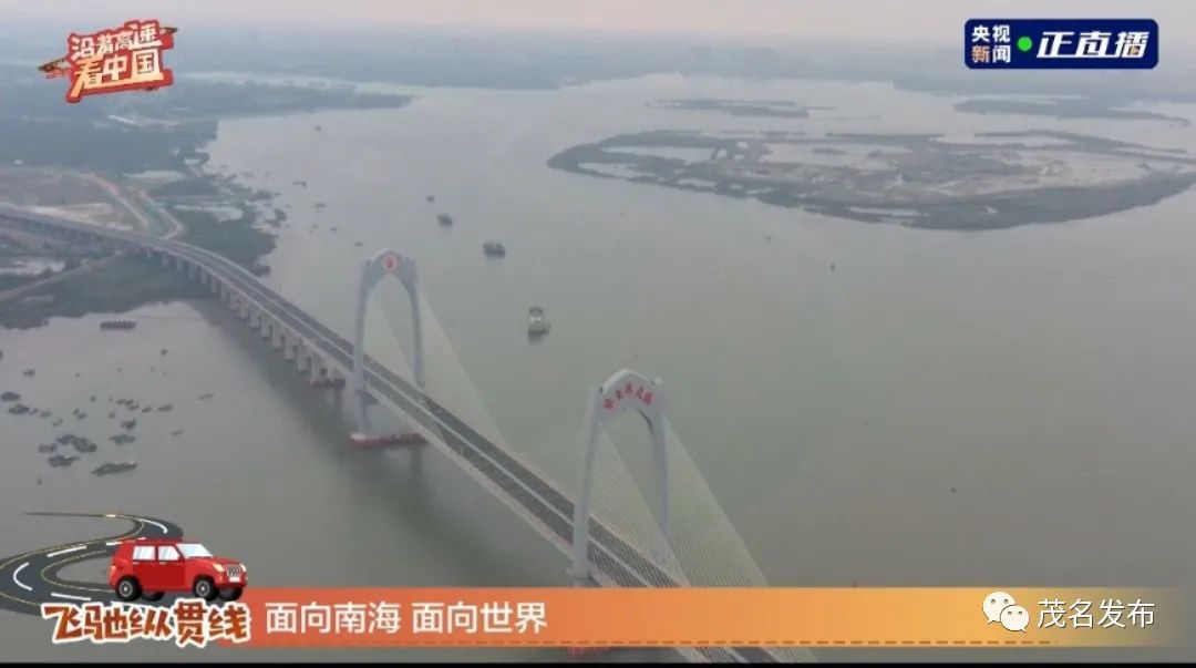 水东湾大桥建成通车后,大大拉近南海到旦场两个片区的距离,由原来1小时车程缩短为10分钟,将彻底改变南海片区交通末梢状况,进一步完善茂名城市主干交通网络,实现“港-业-城”联动发展战略,大幅提升当地发展潜力和竞争力,实现城市可持续发展。直播记者黄东旭说,广东近年来正在全力打造全球最长的滨海公路,全长1875公里,而水东湾大桥是整个滨海公路的重要节点。通过大桥的连通,沿着茂名这段滨海公路可以看到澳内海、中国第一滩、浪漫海岸、放鸡岛等美丽的海岸线。