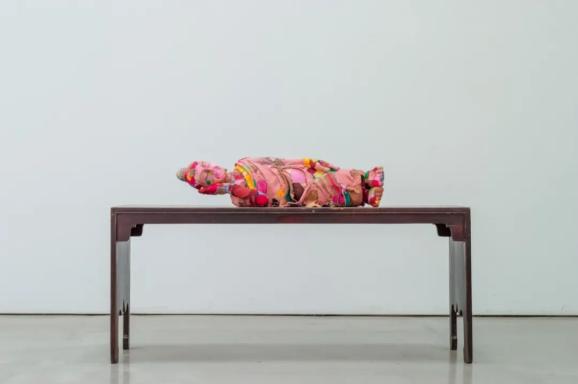 她造佛,用枯枝、布料创作大型涅槃雕塑,不论是枯萎的树枝,亦或用剩的香云纱边角料,每一种选材,都与佛教教义息息相关,足见其虔心诚意。