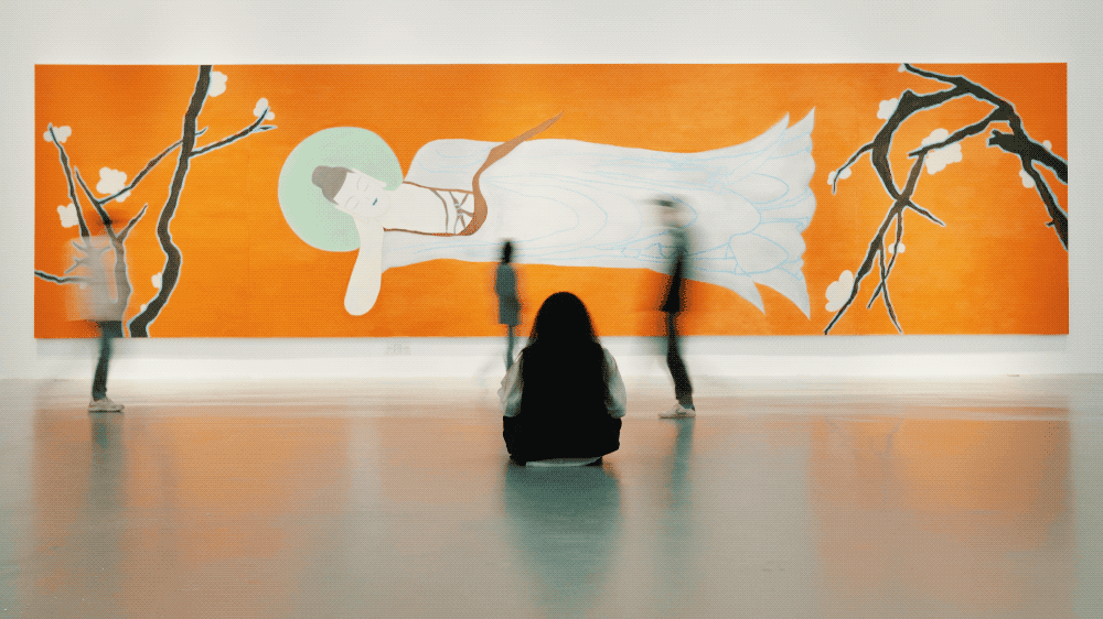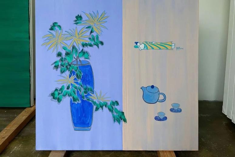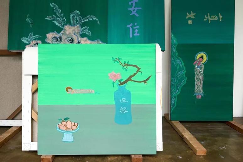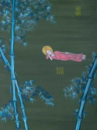 自2015年以来,胡军军便专注于“涅槃佛”这一主题的作品创作。她画佛,以涅槃为题创作了一系列架上绘画,将佛陀置于缤纷多彩的亭台楼阁、传统器物、园林花鸟之间,流露出丝丝文人气息,清高文雅,恣意悠然。