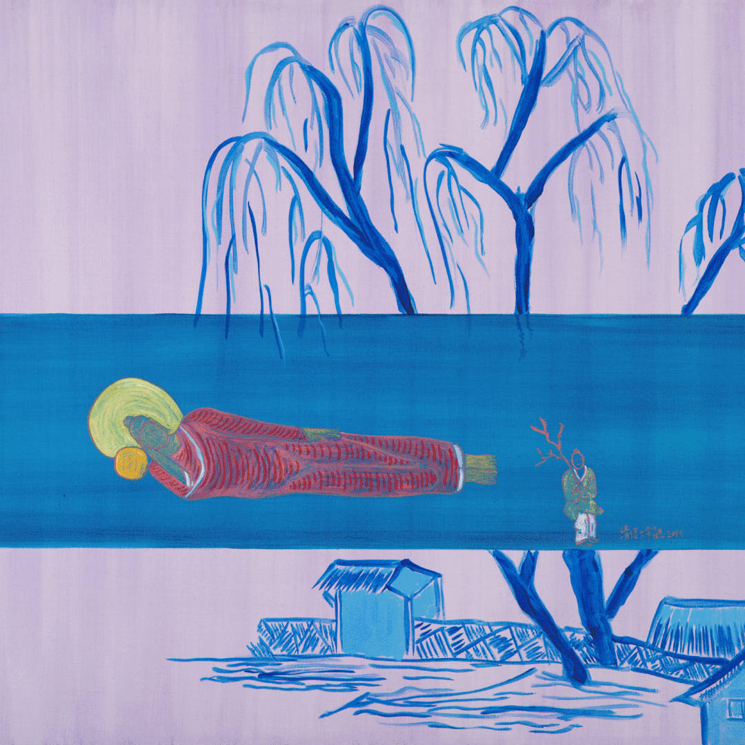 传统的中国山水场景被胡军军赋予绚烂的色彩,传递出一种令人愉悦的独特魅力,这种魅力自然地将大家对于佛教艺术的刻板印象打破。