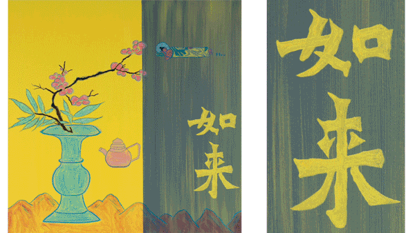 “平安”、“有福”、“如来”、“达旷”等等,画中的汉字如点睛之笔一般,更为直观地表达了艺术家彼时的心情与美好的期许。