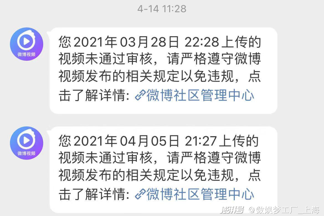 上文提到的视频博主芍药向数娱君提供的一份最新视频审核反馈显示:就在四月中旬,此前两个已成功发布的剧综视频接连被删除,而这一事件发生的时间点恰好在长视频们第一份联合声明之后。