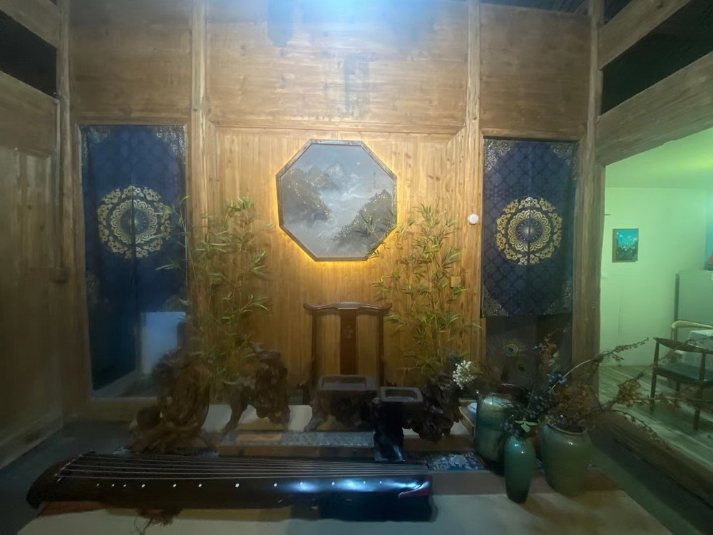 “如是书院”里有茶室、书房、会客厅,还有间陶艺工作室,可以让前来体验的游客或小孩体验如何制作一个陶瓷作品。书院在进坑存在了四年,四年期间,晓燕和丈夫从三口之家变成了四口之家。2020年,晓燕从进坑搬到湘湖镇双凤村,重新开始设计理想的民宿。