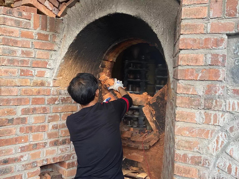 当地匠人开窑现场。