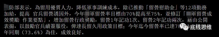 作为“64年班”严德发的学弟,同为台军装甲兵出身的邱国正也面临了一个新的问题:留营率。随着解放军的活跃,台军一线部队的留营率在2020年年末大幅度降低,台军一线空军由于过于压榨地勤人员,已经导致地勤军官、士官离职率增加,整个台湾空防人员体系“摇摇欲坠”,严重制约了台湾空军的出动能力。